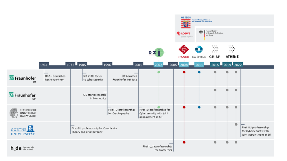 ATHENE has a long tradition in cybersecurity both through its involved organizations and its predecessor centers. Even though ATHENE in its current has been founded in 2019 it is based on a very long history in cybersecurity research.