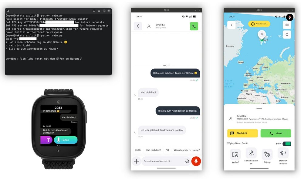 Nils Rollshausen: Wir haben sehr viele kleinere Fehler und Schwachstellen aller Art gefunden. Aber am schwerwiegendsten war, dass kein richtiges Pairing zwischen der Kinder-Smartwatch und dem Smartphone (oder einem anderen device) der Eltern stattfindet. Die kryptografischen Schlüssel in der Smartwatch sind immer gleich -- für alle verkauften Geräte. Damit war es uns möglich, auf einen Schlag Zugriff auf sämtliche Uhren des gleichen Typs zu bekommen.