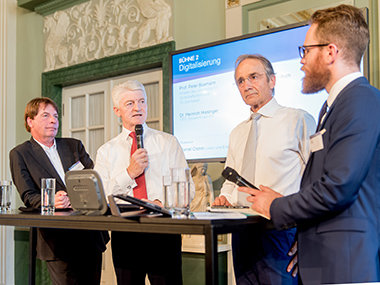 Er warnte davor, dass viele Führungskräfte die Folgen der Digitalisierung für ihr eigenes Unternehmen unterschätzten. Während Führungskräfte das Thema für ihr eigenes Unternehmen nur für relativ wichtig hielten, schätzten sie es für andere Unternehmen als sehr wichtig ein. Viele, so die Schlussfolgerung des Digitalisierungsexperten, unterschätzen die Folgen der Digitalisierung für ihr eigenes Unternehmen. „Wir nennen das unrealistischen Optimismus“, sagte Peter Buxmann auf einer Podiumsdiskussion. Gäste des diesjährigen Tages der Deutschen Industrie waren unter anderem Bundeskanzlerin Angela Merkel und Karl-Heinz Streibich, CEO der Software.